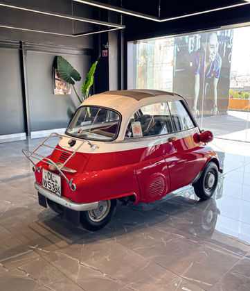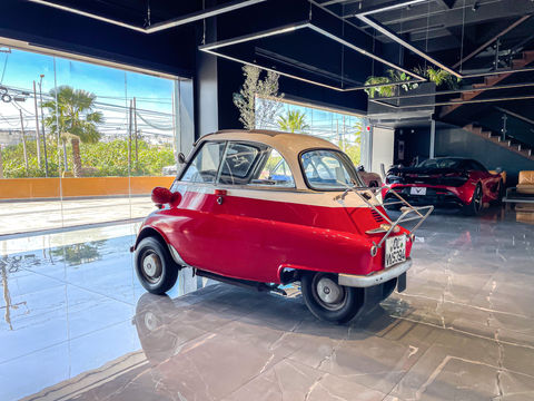 El BMW Isetta 250 de 1962 es un microcoche icónico con una puerta frontal tipo refrigerador, un motor monocilíndrico de 250 cc y 12 CV, 350 kg de peso, y una velocidad máxima de 85 km/h. Mide 2.25 metros de largo, permitiendo a dos adultos viajar cómodamente, y cuenta con un portaequipajes trasero y un techo de tela para ventilación. Motor: Un motor mono cilíndrico de 250 cc proveniente de una motocicleta BMW de cuatro tiempos, con una potencia de 12 CV, alcanza una velocidad máxima de hasta 85 km/h.