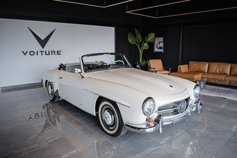 Bajo su elegante silueta, el 190 SL alberga un motor de cuatro cilindros de 1.9 litros que entrega 105 CV, diseñado para ofrecer una conducción suave y ágil, ideal para largos trayectos a velocidad de crucero o paseos dominicales con estilo. Su transmisión manual de 4 velocidades y una suspensión derivada del Clase S garantizan una experiencia de conducción refinada, mientras que su interior, con detalles en cuero y madera, envuelve al conductor en un ambiente de lujo clásico.